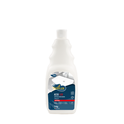 Detergente disincrostante a base di acido solfammico e citrico specifico per la pulizia giornaliera e periodica di tutte le superfici dell'area bagno resistenti agli acidi.